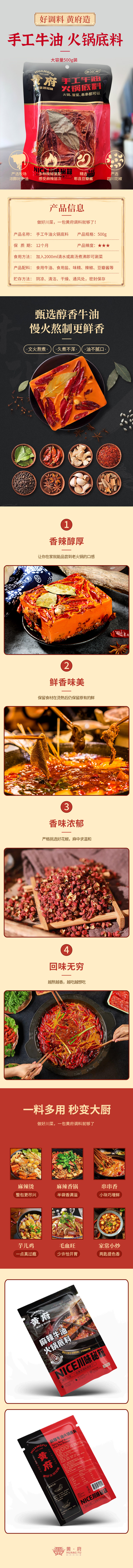 高品质牛油通过慢火熬制,浓缩了其精华,赋予火锅汤底浓郁的香气和层次感,并使火锅口感更加顺滑!这种手工牛油经过长时间的低温熬制,确保每一滴都能带来丰富的美味体验! 在搭配上,天然的香辛料与牛油的结合,形成了这款火锅底料的配方!辣椒、花椒、姜、蒜等多种香料,被准确控制其比例,形成了一种和谐却又刺激的辣感。这种麻辣的口感层次丰富,既能激发出肉类的鲜美,也能中和蔬菜的清爽,每一口都让人回味无穷。香辛料的使用不仅提升了食物的味道,也有助于促进食欲,使火锅真正成为聚会和家宴中的烹饪亮点!