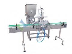 该机主要适用于各种不含颗粒或含小颗粒的半流体产品的灌装旋盖:如豆瓣酱、香辣酱、牛肉酱、豆瓣酱、蘑菇酱、番茄酱、花生酱、果酱、蜂蜜、酱料、虾酱类、酵素、洗发水、沐浴乳、洗衣液、洗碗液等。也可灌装各种液体、粘稠体等。