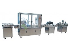 糖浆口服液灌装旋盖联动线适用于适用于批量生产各种液体灌装的产品,并能自动上塞,上盖,旋盖及贴标。