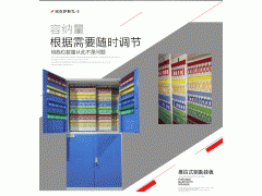 型号:E-Key4/E-Key4mini,尺寸:1850x650x300/700x650x300,容纳量*多放置100位(小型柜型30位),在开柜方式上采用电控开柜,且通过无线将信息上传至管理的服务端,即pc管理软件,LED 灯光提示在位状态。