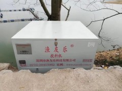 15.投料机采用投料面积调节技术。投料面积可从5米至60米任意调节瞬间完成,当鱼苗小时投料面积调小,鱼长大后投料面积可调大,并可在抬网内调好投料面积投料,方便抬鱼。
