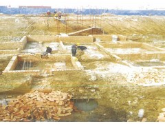 3、砌筑使用的工具应放在稳妥的地方,斩砖应面向墙面,工作完毕应将基础梁内的碎砖、灰浆清扫干净。