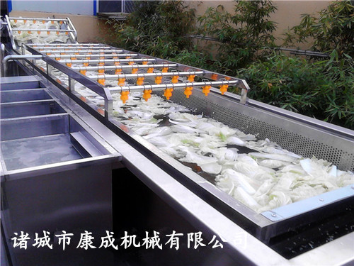 连续式大枣清洗机由水箱、提升机、循环冲洗水泵、传动部分等部件组成,工作时由于水中压力的存在,使果蔬在水中剧烈翻滚搅动,清洗水经过过滤后,由循环冲洗泵加压至进料口喷管回冲,喷管方向可调,物料被喷管喷出的高压水再次冲洗,并朝着出口方向漂移,出口处置刮板提升机,刮板提升机的速度可调(调节刮板提升机速度到所需的生产能力),将冲来的果蔬送至下道工序(可根据用户要求在出口刮板提升机上加喷淋管,进一步进行喷洗),也可根据用户不同的物料,加工不同的提升结构。设备在气泡、冲浪、提升、喷淋等联合工作下,具有洗洁净高、节能节水、设备稳定可靠等特点。
