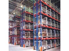 驶入式货架又称通廊式货架或贯通式货架。贯通式货架采用托盘存取模式,适用于品种少,批量大类型的货物储存。贯通式货架除了靠近通道的货位,由于叉车需要进入货架内部存取货物,通常单面取货建议不超过7个货位深度。为提高叉车运行速度,可根据实际需要选择配置导向轨道,与货位式货架相比,贯通式货架(驶入式货架)的库空间利用率可提高30%以上,贯通式货架(驶入式货架)广泛应用于冷库及食品、烟草行业。