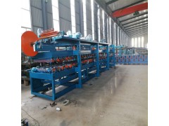 980型搭接式泡沫保温复合板设备流程:放料架——980型压瓦机——泡沫送料机架——复合板主机——切割机——接料架。
