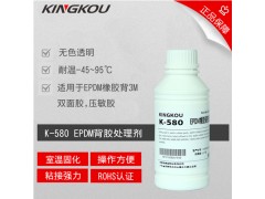 景固KINGKOU K-580EPDM(三元乙丙)橡胶处理剂主要用于对三元乙丙橡胶贴双面胶(压敏胶)表面进行处理,在经处理后,可以增加三元乙丙橡胶与双面胶(压敏胶)类的胶纸粘接度,该胶水使用方便可温室操作常温固化,胶水完全固化后粘接强度脯耐老化,耐高温。