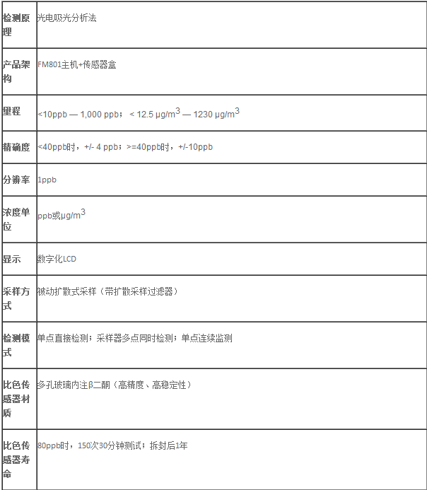 ![]() 三、FM801多模式甲醛检测仪_检测参数: