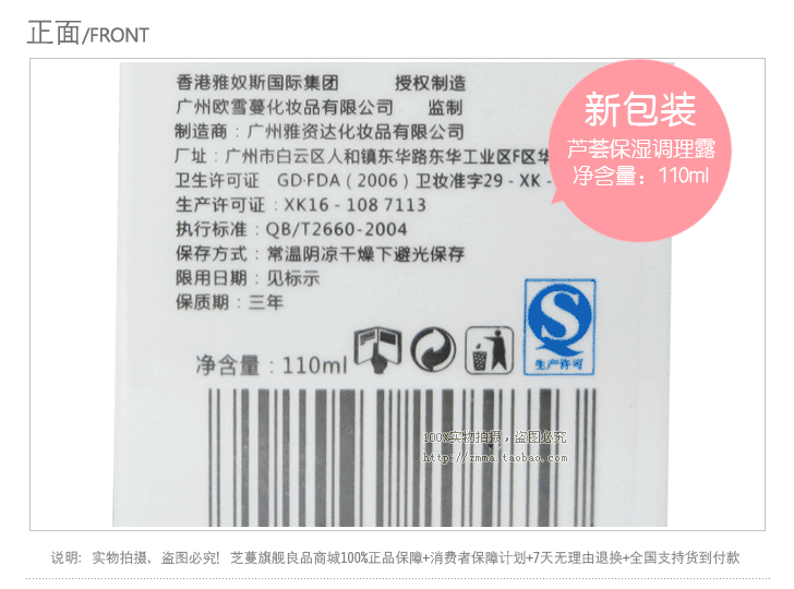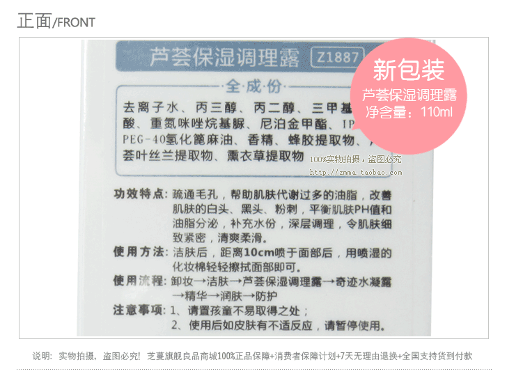 使用流程:卸妆—洁肤—芦荟保湿调理露—奇迹水凝露—精华—润肤—防护