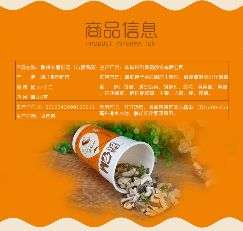兴利蘑秀香菇汤杯装酸辣味10g 速食汤即食速溶蔬菜汤速冻方便食