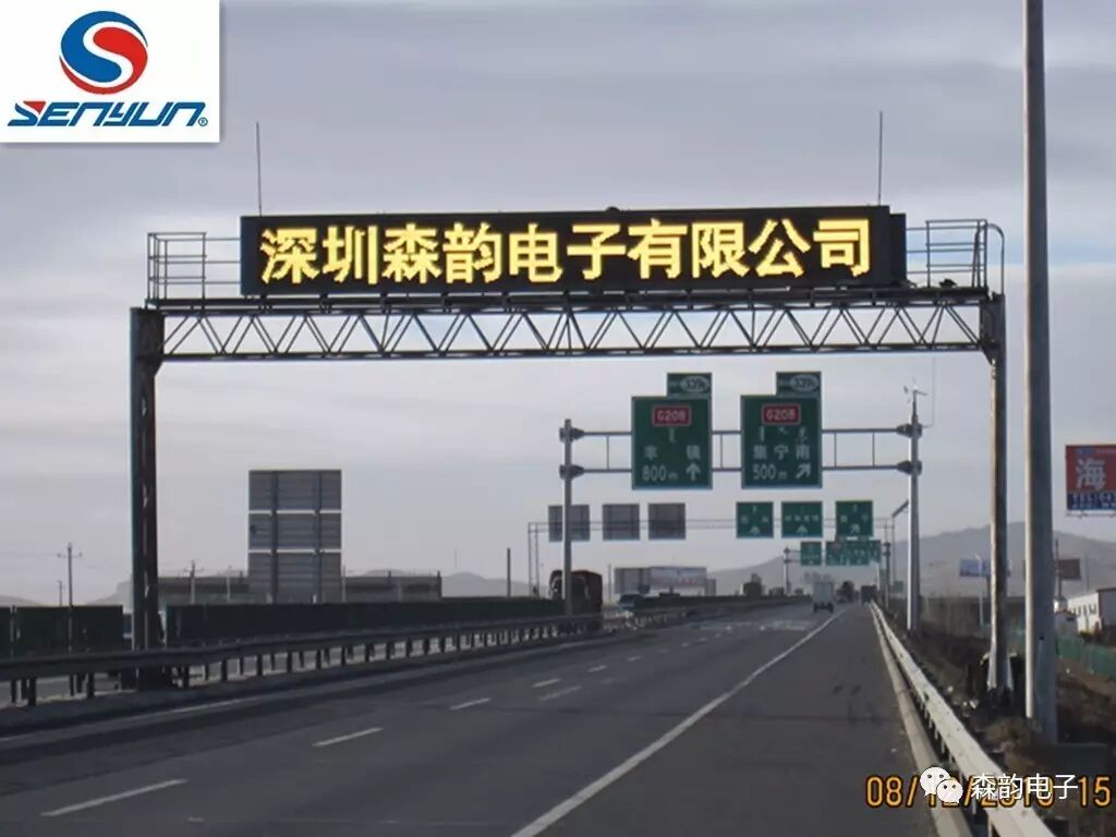 用于显示道路的相关信息(事故、道路维护、恶劣气象),对交通进行诱导。门架式可变情报板由设置在控制箱内的微处理器操作,微处理器通过信号传输系统和监控中心计算机相连。