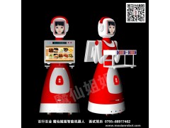 具备功能:点菜下单/支付结算;排队预定;AR体感互动游戏/趣味聊天;人脸识别/电量显示;速度调节/手机、平板PC均可控制;21.5寸图片视屏播放屏/广告投放;商家*LED滚动信息播放条屏;自动避障(移动状态下)/急停;音乐播放/语音提示