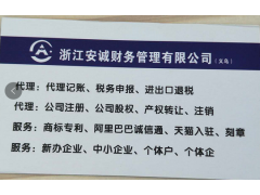 公司始终坚持“安全为先,服务至上、精于*,诚于品德”的宗旨,以丰富的数据资源、专精的财务人员队伍、*的会计信息输出和诚信*的服务开展业务活动,为中小微企业提供确实可行的财税问题解决方案和各种财务服务,满足广大客户的需要。