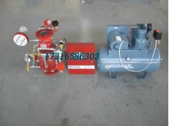 单联锁预作用系统根据不同的系统启动方式,由预作用阀及相应配管、火灾探测系统( 由电探测或湿式启动喷头或干式启动喷头或手动/ 电控阀门开启装置)、空气压缩机和自动气压维护装置、闭式灭火喷头、管网和供水控制阀等组成。NFPA 要求喷头数超过20 个时,系统管网必须充气,自动监测系统管网( 喷头、管道、管道部件) 的完整性。系统管网监测气压 自动保持在10±2psi(0.69±0.14bar), 监测气体压力的低压报警开关可以在气压降至5±1psi(0.34±0.07bar)时发出信号,指示系统管网中有异常泄漏。