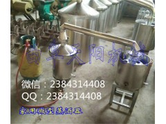 市场上的劣质酒精勾兑酒喝起来刺喉,喝多之后对大脑刺激很厉害,给身体健康造成的危害,人们纷纷向勾兑酒说“不”,这使的小作坊自酿自销的纯粮酒(俗称小灶酒)受到人们的热捧和青睐,也更能体现中华民族的酒文化及煮酒乐趣。粮食蒸酒技术简单,易操作, 酿酒原料为玉米、高粱、大米等含糖含淀粉多的粮食,用煤,柴,煤气或通蒸汽等方式加热蒸酒,酒质纯正,粮香浓郁,好喝不上头。玉米做酒,要选用无虫蛀,无霉烂变质,颗粒饱满的玉米,用粉碎机粉碎后,与水和酒曲在发酵容器内混合均匀,密闭保温发酵(温度33-35度)8-10左右,待发酵完毕后,将料液倒入玉米造酒的蒸筒内,盖上盖,与冷却器连接密封好,加热即可蒸馏出酒。每百斤玉米可以生产平均度数50度的酒55-60斤,每斤酒的成本在2.8-3.2元,市场销售价格在8-15元不等,利润相当可观。酿酒设备粮食蒸酒机为分体式结构,由蒸筒,锅盖,导气管和套管式冷却器组成,纯不锈钢制造,干净卫生,经久*,不会产生对人体有害的铅、铝等物质,冷凝器为阵式套管状的冷却结构,在减小冷却器体积的同时,大大增加热交换面积,冷却效果明显增强,出酒率高,是天阳机械公司生产销售的一种纯粮酒加工设备,为家庭酿制纯粮白酒的可以选择。它的出现,可以使人们自己酿制粮食酒,与假酒,勾兑酒说再见。酿酒设备粮食蒸酒机现有型号:家庭自酿自喝用TYJ-15型,蒸筒容积20L,每次可加工粮食10-15斤,价格2480元。小型商用型:型号TYJ-50,容积:,120 L,每锅粮食量:50斤,价格:煤气加热型2860元,电气煤加热型3580元。TYJ-100型,容积240L,每次加工粮食100斤,价格煤柴或煤加热型3800元,电气煤加热型5300元。TYJ-200型,加热方式:煤、柴,蒸汽,容积450L,每次加工粮食200斤,价格7800元。购机免费提供粮食发酵酿酒技术,白酒调香技术和酒曲的配方(自配酒曲,不受垄断制约)。欢迎用户到现场实地考察,看样定货,**技术人员为您技术讲解、购机实地培训,帮您分析了解市场。不方便到厂考察用户,如选择汇款购机,随机提供详细机械使用说明书和相关技术配方。长期负责技术咨询。联系人:李帅,手机13181307932 13791763698 QQ2384314408 微信2384314408