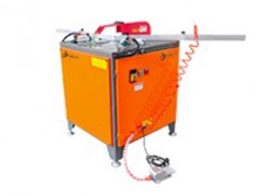我公司自主开发和改良的新型切角机,由进口气动系统控制、加工效果好、出刀速度稳定、流畅。用于铝合金框、封边条、相框、门窗、灯饰铝材、铝材45°、90°开料切割,配有标准尺,定位准确;脚踩控制,压料定位机构;使用起来更简单、安全、快捷。工作台面采用进口钢板,台面厚10MM表面平磨,切削精确及*。