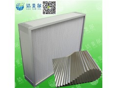 有隔板*空气过滤器主要用于捕集0.5um以下的颗粒灰尘及各种悬浮物。采用超细玻璃纤维纸做滤料,胶版纸、铝膜等材料作分隔板,与木框铝合金胶合而成