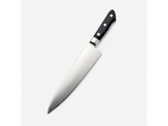 日本TOJIRO(藤次郎)粉末钢牛刀菜刀厨刀F-521,商品材质为刀身:粉末钢 刀柄:黑积层强化木。商品功能为切菜切肉切水果,是一把多功能的厨刀,商品尺寸为刃长240mm全长365mm。日本TOJIRO—藤次郎牛刀240mm主体采用粉末钢制成,粉末钢是由金属粉末雾化而冶炼出来的,因此其晶相结构几乎是目前金属材料中**的,加之进行了热处理使其刃口硬度可以达到60个洛氏硬度以上,采用接近日本传统甲伏锻的复合工艺使其在韧性、强度、硬度和*性上都有不少提升。