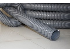 材料特性:采用德国BASF阻燃PU原料,内嵌阻燃塑料加强筋制成,具有良好的耐化学性、耐水解性,使用寿命可长达15年。软管内壁非常平整,可减少物料流动的阻力,软管可在一定程度碾压后恢复原状。
