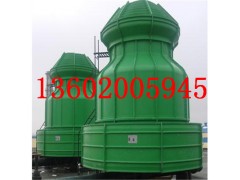 圆形逆流式冷却塔的工作过程:热水自主机房通过水泵以一定的压力经过管道、横喉、曲喉、中心喉将循环水压至冷却塔的播水系统内,通过播水管上的小孔将水均匀地播洒在填料上面;干燥的低晗值的空气在风机的作用下由底部入风网进入塔内,热水流经填料表面时形成水膜和空气进行热交换,高湿度高晗值的热风从顶部抽出,冷却水滴入底盆内,经出水管流入主机。一般情况下,进入塔内的空气、是干燥低湿球温度的空气,水和空气之间明显存在着水分子的浓度差和动能压力差,当风机运行时,在塔内静压的作用下,水分子不断地向空气中蒸发,成为水蒸气分子,剩余的水分子的平均动能便会降低,从而使循环水的温度下降。从以上分析可以看出,蒸发降温与空气的温度(通常说的干球温度)低于或高于水温无关,只要水分子能不断地向空气中蒸发,水温就会降低。但是,水向空气中的蒸发不会无休止地进行下去。当与水接触的空气不饱和时,水分子不断地向空气中蒸发,但当水气接触面上的空气达到饱和时,水分子就蒸发不出去,而是处于一种动平衡状态。蒸发出去的水分子数量等于从空气中返回到水中的水分子的数量,水温保持不变。由此可以看出,与水接触的空气越干燥,蒸发就越容易进行,水温就容易降低。