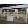 立欣生产的八棱柱标摊:是采用国际通用标准(990系列)而设计制作的展位,起源于德国,现已在全球范围内得到广泛的使用,主要器材组成为;八棱柱、八棱柱支座、八棱柱锁件、联板、双面pvc展板、接待桌式洽谈桌、展椅、射灯等。