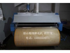 开松梳理一体式精细弹花机集合宽幅吸尘弹花机和精细弹花机优点为一体,能直接加工旧毛线,旧棉被等,去掉吸尘弹花机开松除杂的过程,更能节省时间、人工和场地。在加工棉花、羊毛、化纤等材料上,除尘、除杂效果更佳,一次成型效果更好。该机实现了开松梳理一次完成的*新工艺技术,节省了人工,梳理好的纤维都很顺溜且均匀的相互粘连着,制作好的被胎不易分家。是开店或是开小型棉被加工厂更好的选择!