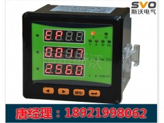 PZ48-AV双回路多功能系列网络电力仪表用于配电系统的连续监视与控制。可测量双回路三相电流、功率、电能和需量,以及一路母线三相电压。具备4 路数字量输入(DI),1 路24V 直流辅助电源输出。所有数据都可以通过RS485 通信口用Modbus?-RTU 协议读出。双回路多功能表将精确测量、智能化多功能和简单人机界面结合在一起。仪表可替代两块多功能电力仪表, 节省盘面空间,占用通信资源少,降低配电监控系统和能源管理系统的造价,用户在实现配电自动化和能源管理的同时节省大量投资;PZ48-AV电力监控仪表是应用于中低压系统的智能电力监控装置,具有强大的采集、处理、统计和控制功能,具有三相交流电参量的测量与计算、电度量累计、2~31次谐波分析、电能脉冲计数、开关量监测、SOE记录、继电器输出控制、直流变送输出、越限告警、复费率电度量统计等多种功能。其测量精度达到0.2级;PZ48-AV智能电力测控仪可测量单相和三相电网的全部电参数,与通讯模块和遥信遥控模块连接,可实现RS485通讯和开关量输入、输出功能。PZ48-AV具有高亮度LED显示屏,可实时显示所有电参量,同时可通过RS485通讯接口和SVO的变配电监控系统、能效管理系统(或第三方系统)等连接,组成一个完整的自动化监控体系;