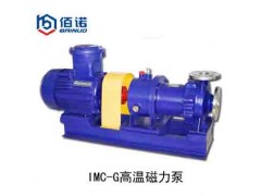 IMC-G高温型磁力泵输送大压力为1.6MPa,温度不超过350℃,粘度不大于30*10-6m2/s的不含硬质颗粒和纤维的液体。当输送介质系统压力大于1.6MPa时,佰诺泵阀公司可进行特殊设计制造。