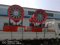 3、应用于除尘降温领域的产品分为两种:在没有人员作业的环境中可采用大风量、大流量、远射程的效果;在有人员作业的环境中则可采用干雾喷射,雾滴极小,无水滴掉落现象,此种喷雾效果则要求喷头精度高,过滤设备精密等。