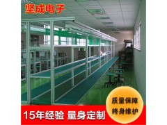 装配流水线可分为顶配照明风扇装配线及无顶装配线,装配线运行速度可依据作业工人的技能熟练进行调节,气源供应节头配备于每工位。