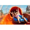 游客乘座在长方形状的双人皮筏上,握紧扶手,在水润滑下利用自身重力沿玻璃钢滑槽顺势滑下,经过几次上下坡段左右水上飞龙相互转换,再进入一陡降段,充分体验到非自主滑行的刺激快感,随后进入缓冲段,在缓冲段内减速后停在缓冲段中,在缓冲段内停稳后走下双人皮筏,走出缓冲段,完成一次惊险之旅。