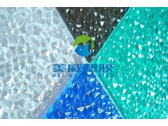 高抗冲击性的PC颗粒板(钻石纹、荔枝纹、水滴纹等),可提供单面或者双面抗UV功能,广泛应用于建筑以及装潢材料。