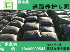 l辽宁辽阳百丰鑫沥青冷补料配方严谨,为了产品性能更稳定,用料分为三种:春秋季料,夏季料、冬季料,耐高低温性能优越,能更好的应对不同季节的坑槽修补。原料美国进口,粘结性强,性能稳定,另外添加了抗车辙剂,修补后的坑槽经过重型货车碾压,也不会留下车道沟,能够减少道路病害的产生,提高道路的使用寿命。为提高坑槽修补工作效率,产品采用25公斤的包装,一个工人能搬,一些面积较小的坑洼修补,一人即可施工,而且施工时不需要封闭交通,先把坑槽清理干净,把不规则的边角修正,然后把百丰鑫沥青冷补料填进坑槽内,选择相应工具压平压实后,即可通车。
