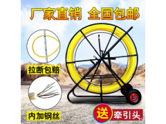 穿线器**些时候主要用于墙壁下路牵引,后来发展为下水道的光缆线等一下线路的牵引。穿线器具有省时,省力,提高工效等优点,可用于电信管道清洗及光缆,电缆和塑料子管的布放。使用时首先将玻璃钢覆杆由引轮引出,然后与相应的金属头联接,穿入管路内。用于清理时,引导头带动清理工具,可以清理管道;用于布放电缆时,可先将钢丝或铁线带入,然后用钢丝或铁线牵引电缆入管。