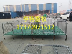 养猪用保育床,主要设有支脚的底板、以及设置在底板四周的围栏组成,其特征在于:在所述底板上还设有与前后两侧围栏相连接的隔栏,在所述隔栏上还设有双面料斗,在所述围栏上还设有分别位于隔栏左右两侧的门体。不仅结构简单,而且成本低廉,同时还便于拆卸,因此可便于移动;其支脚将底板支撑后离开地面,清洁时只需对底板进行冲洗,冲洗产生的污水也不会淤积在底板上;在隔栏上设有双面料斗,从而可将猪分开在隔栏分隔的两个单独的空间中饲养,而只需使用一个料斗即可使分隔在隔栏两侧的猪能共同进食,因此适合推广使用。