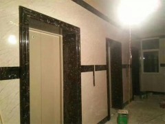 在施工的时候,对于电梯门套线宜用选好的造型和花色的石塑线条制作成框架后,再将装配成型的电梯门套按照卡口安装在墙体上。对于电梯门套与墙体的缝隙处用美缝剂填充处理,防止装饰线条卷翘,同时美化了墙体与电梯门套的结合处,电梯门套的下口宜采用人造大理石,以免因受潮而变黑变形。在安装时一定要保证同一电梯门套的色泽一致,纹理相同,分段造型线条接头截面一致。