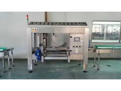 桶装水全自动套袋机, 该设备解决了长期以来传统的人工提桶套袋的工艺,在减少劳动强度下同时保证了真正实现自动化生产,大大降低了生产成本,提高了效率。该设备还采用了PLC集中控制,外观造型美观大方,结构设计合理。机器性能稳定,动作准确到位,能耗低。与灌装机配套作业,不伤桶。本机机体全部采用*不锈钢材料,无毒,*。设备安装维护方便,使用效果好,寿命长。