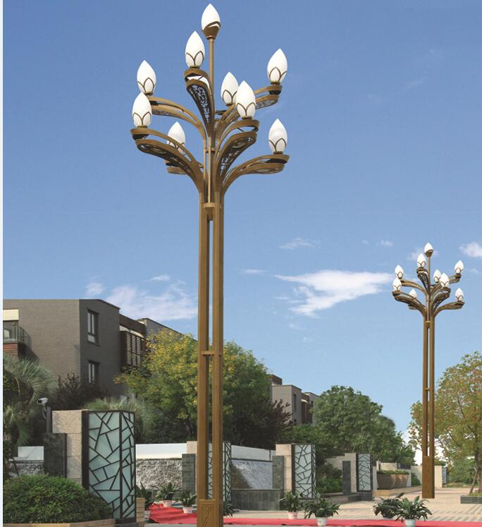 玉兰灯有光源,灯罩,灯杆,法兰,预埋件5部分组成。玉兰灯外观简单大方白天在道路两旁行成一道亮丽的景观,晚上在城市夜景中发挥着靓丽的景色。玉兰灯高度一般在6-8米,有一根很长的灯柱,光源一般有6-12颗玉兰型状的灯盏,使玉兰灯造型简单新颖。灯杆成型后,内外热镀锌防腐处理,表面光洁,无色差,且镀层均匀性好,具有很强的防腐性能要求。