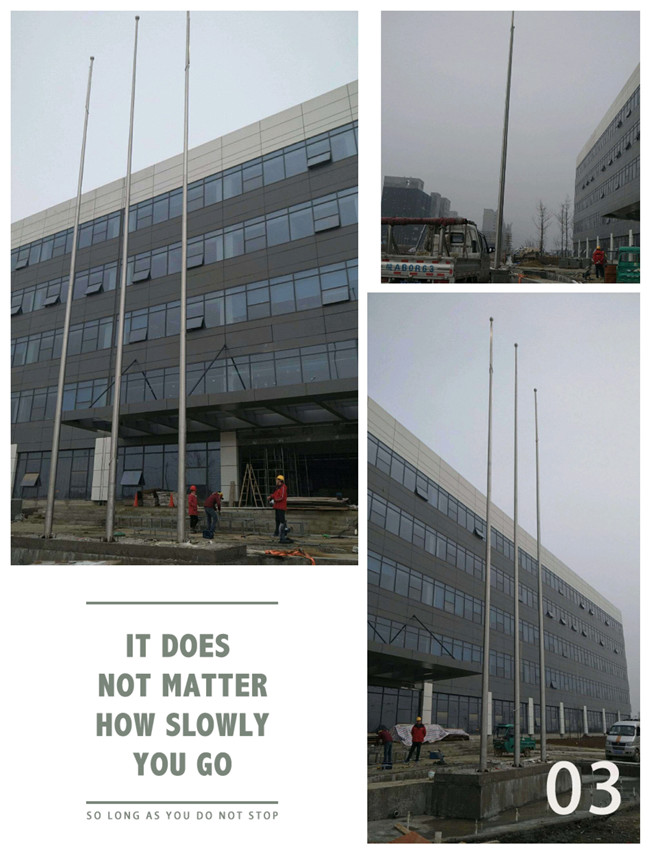 本公司主要生产的不锈钢旗杆、酒店旗杆、锥形旗杆、水平旗杆、电动旗杆,通过采用SUS304/SUS316/SUS201*不锈钢制作,旗头可360度顺风自由旋转,这样避免了国*缠绕在旗杆上。不锈钢绳内藏于旗杆内,旗杆外无旗绳,这样避免旗绳缠绕在旗杆上。锥形旗杆和三节旗杆有内置旗杆,外置旗杆,风动旗杆。主要用于公司、酒店、广场、体育馆,学校等单位。