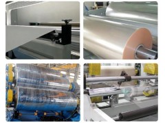 EVA*片材挤出机规格 EVA*片材生产线 流延法是制取薄膜的一种方法。制造时,先将液态树脂或分散体流布在载体(一般为金属带)上,随后用适当方法将其熟化,zui后即可从载体上剥取薄膜。挤出利流延相结合即可制备*的热成型加工塑料片材。