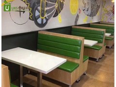 在快餐桌椅的材质挑选方面,首先注意的就是餐桌椅的表面用料一般要求采用硬杂木材料,例如水曲柳、柞木等,这些木料比较结实,能承重,而内部用料则可考虑用其他材料;一般的桌面厚度要求达到2.5厘米,太厚就显得笨拙,薄了容易弯曲变形;餐桌应具备耐高温,*的作用。