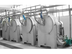 离心筛是将锉磨后的薯类乳液中的细纤维(薯渣)和淀粉尽可能地分离。该设备广泛应用于大中型淀粉生产企业,可用于薯类、小麦淀粉的提取。 该设备主体全部选用优质不锈钢制作,设备表面采用特殊的处理工艺,美观大方,耐油耐脏。旋转筛篮做动平衡精度一级校正,确保设备运行平稳;其筛面由特殊板材精制而成,美观耐用。整机处理量大,动力配置合理,淀粉提取率脯设备易于安装。设备运行工作时,薯类乳液由门盖上的进料导管进入旋转的锥形筛篮底部,在离心力的作用下,乳液均匀地沿着筛面分布,并向大径方向运动。在锥形筛篮内,乳液表面受切线、法线两个方向力的共同作用,沿内锥面做较复杂的曲线运动,或者翻滚,到达锥形篮外缘,被离心力作用而向四周溅射,落入集渣室。而淀粉颗粒直径小于筛网网眼或隙宽,在离心力和重力的作用下,透过网眼或缝隙,一部分直接落入集粉室;另一部分向机体背壳溅射并沿着背壳下滑,落入集粉室。 由于锥形筛篮的前面和背面都设置了喷水的喷嘴,能够均匀地向筛篮喷洒稀释水,以将薯液中的淀粉颗粒冲洗出来,同时喷水也能提高淀粉颗粒和细纤维(薯渣)的运动速度,促使粉、渣分离,提取淀粉。