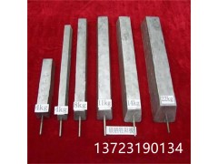 镁合金牺牲阳有高驱动电压、低电流效率、造价高。根据形状以及电极电位(开路电位)的不同,镁合金牺牲阳极可用于电阻率在15欧姆·米到150欧姆·米的土壤或淡水环境。一般不应用于土壤电阻率小于10欧姆·米环境。高电位镁阳极的电位为-1.75V CSE,驱动电压0.85V;低电位镁阳极的电位为-1.55V CSE,驱动电压0.7V。使用温度可以达到100℃。当牺牲阳极剩余量为重量的15%,即认为阳极失效,所以,牺牲阳极的使用率一般取85%。