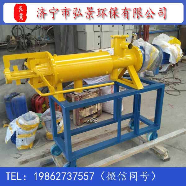 主要由:滤网、螺旋绞龙、螺旋叶片均采用优质304不锈钢跟合金经过特殊的工艺制造而成。粪便通过无堵浆液泵将粪水抽送至主机,经过挤压螺旋绞龙将粪水推之主机前方,物料中的水分在边压带滤的作用下挤出网筛,流出排水管,分离机连续不断地将粪水推至主机前方,主机前方压力不断增大,当大到一定程度时,将卸料口顶开,挤出挤压口,达到挤压出料的目的,通过主机下方的配重块,可根据用户需求调节工作效率和含水率。