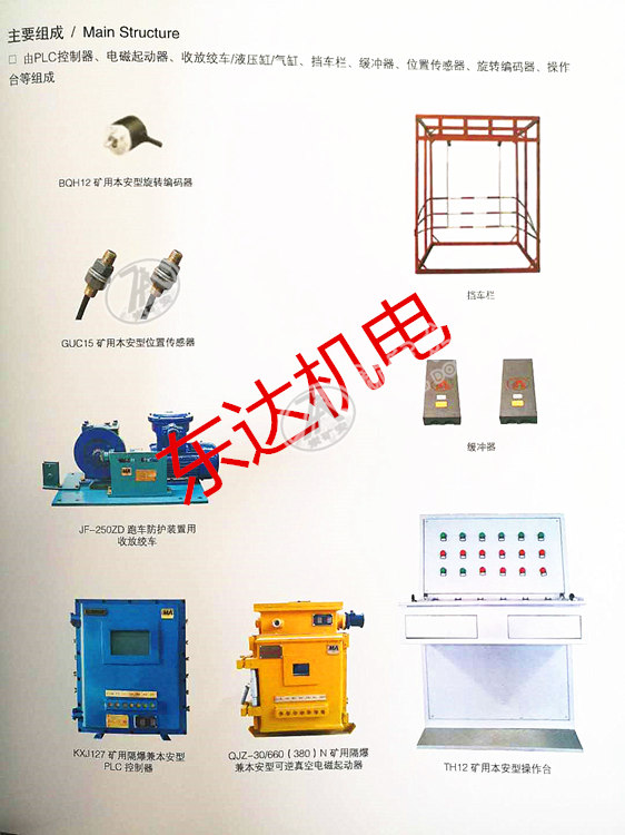 由PLC控制器、QJZ-30/660(380)N隔爆本安电磁起动器、JF-250ZD收放绞车、挡车栏、一对压板缓冲器、一对GUC15位置传感器、BQH12旋转编码器、操作台等组成。
