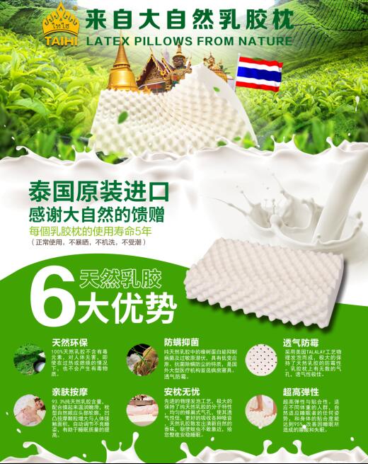 1、TAIHI泰嗨乳胶枕头杀菌除螨,减少呼吸道疾病、皮肤病。
