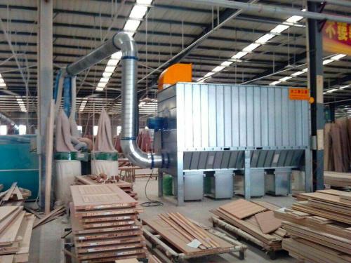 脉冲布袋式除尘设备木屑粉尘收集措施:在每台加工机械尘源上方或侧向安装吸尘罩,通过风机作用,将粉尘吸入输送管道,再送到蓄料仓内,可达到各作业点的粉尘浓度降至2mg/m3。除尘效率在95%~99%以上。