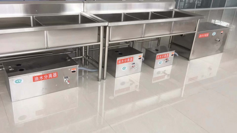 再一个,餐饮油水分离器的安装使用也非常简单,甚至男女老幼均可操作,小型的设备只需要放在洗刷池下,进出水口和排水管对接即可。大型的设备和小型设备安装方式如出一辙,只是需要地埋或者足够大的空间即可。