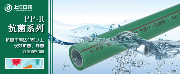 PPR管十大品牌白蝶抗菌水管:中国PPR管之父,国企良心的规范诚信,guo家标准的主要起草者,6+1质量安全保证,相关文件表明其下抗菌PPR水管抗菌率可高达95%以上,良心水管老厂家。