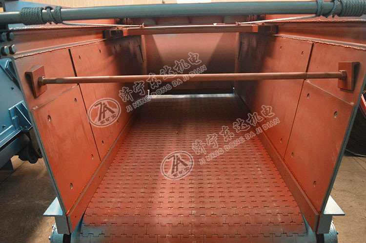 甲带功能:新型甲带,采用 16MN 合金或45#钢,其结构编织密度大、耐磨、耐冲击、耐穿透能力强、弹性好等特点,具有防跑偏, 防打滑功能;克服了老式甲带阁层易夹煤而导致甲带与皮带脱离,出现打滑、断带等现象,导致维护劳动强度大、成本富内衬胶带采用防跑偏结构,在环形 带中间加铸一道梯形筋,具有防跑偏的功能,大大克服了以往皮带跑偏的难题。使用新型甲片组合和成的甲带,提高了给料机低砸放断裂重载启动等性能,分散了胶带所受的冲击力和撕裂力,避免了因大块物料下落冲击而损坏胶带,减少了维护量,延长了胶带的使用寿命实现了甲带与胶带的同步运行,从而延长了甲带式给料机的使用寿命。
