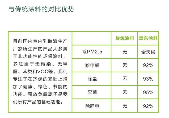 在建筑材料检测中心出具的检测报告中,聿东负氧离子涂料的负氧离子含量达到了8740个/cm³。涂料本身无气味、趋近于零VOC ,同时涂料还具备防霉抗碱、去除异味、除甲醛、耐擦洗等功能,可以持久保持室内空气中负氧离子含量,全天候释放负氧离子,稳定释放10年以上,长久改善人体,促进血液循环,带给用户一个健康活力的室内环境。